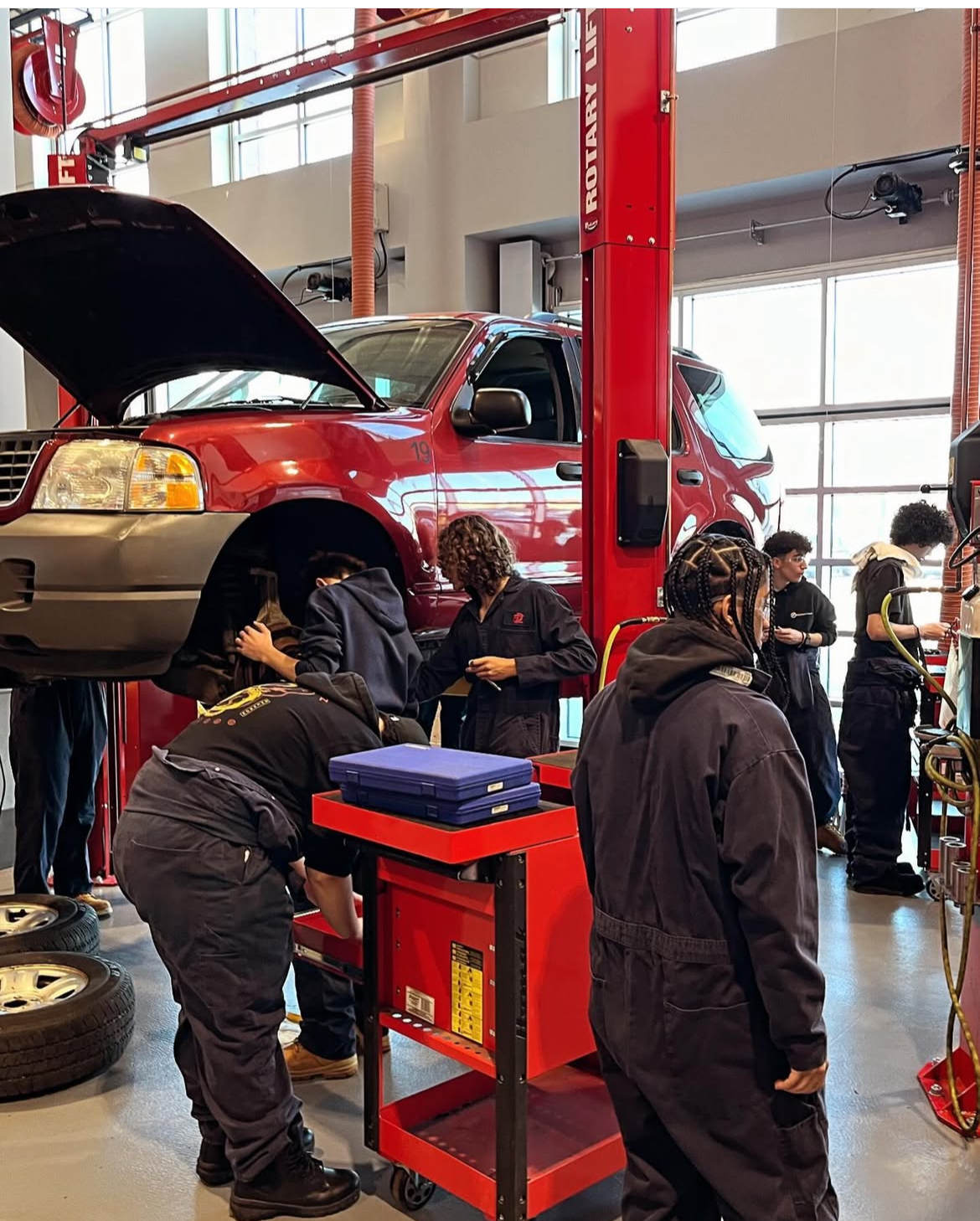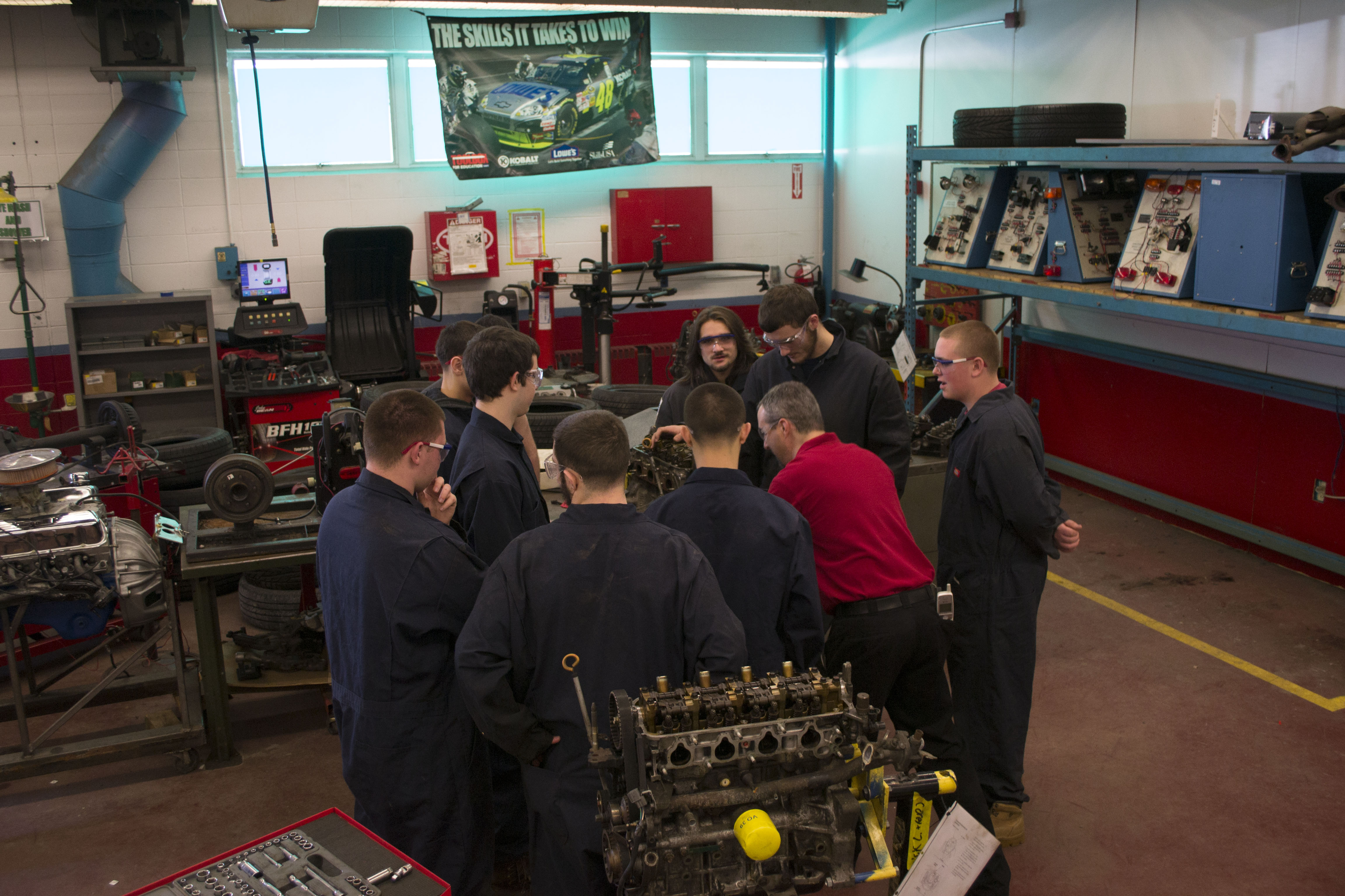 The Automotive Technology program is nationally certified through the Automotive Service Excellence Education Foundation (ASE). This award-winning program prepares students to diagnose, repair, and maintain modern automobiles and light trucks. Systems covered include but are not limited to brakes, steering, suspension and alignment, electrical, engine repair and engine performance, air conditioning, and heating, drivetrain. Tool safety, shop procedures including writing estimates and parts requisition and regular maintenance items such as oil changes, belts and hoses, tire replacement, and transmission service are equally stressed as well. All aspects of the program prepare students for post-secondary school, entry-level position in the automotive field, and/or to take the ASE service technician test after meeting work experience requirements. Young people seeking a career in this field should be mechanically inclined, have good reading comprehension, basic math skills, and computer skills, and enjoy working on cars and trucks. The Automotive Technology program supports student participation in the SkillsUSA competition, Ocean State Dealers Association competition as well as community service through various charity projects.