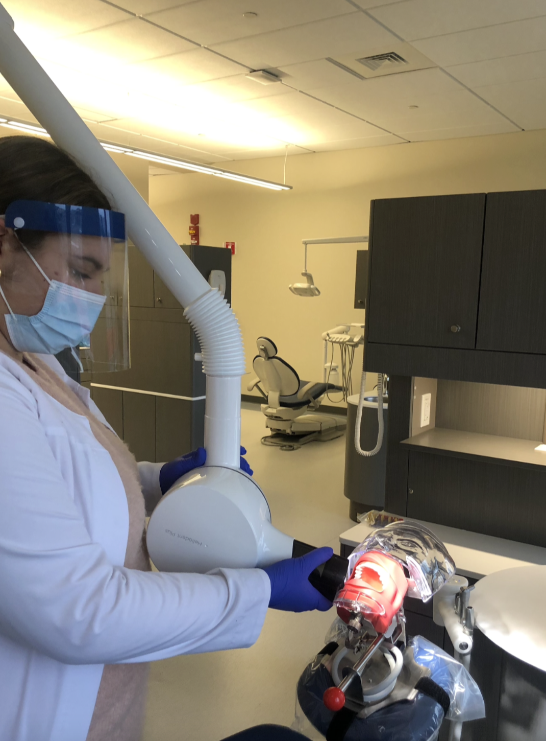 In the Dental Assisting program, the students will learn how to take vital signs, infection control procedures, dental instruments, restorative procedures, suction placement, and laboratory procedures. The role of the dental assistant extends even further to include: preparing the treatment rooms, instrument tray set up, preparing the patients for treatment, reviewing the patient’s medical history, assisting during anesthetic procedures, providing patients help with their oral hygiene skills, exposing dental radiographs, taking dental impressions, instrument sterilization, recording patient notes and office administration roles such as scheduling appointments and coordinating treatment for the patients.